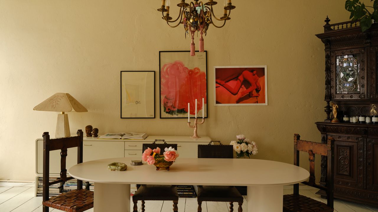 Art paired with vintage items at Anouk Lamm Anouk and Marleen Anouk-Roubik’s home in Vienna