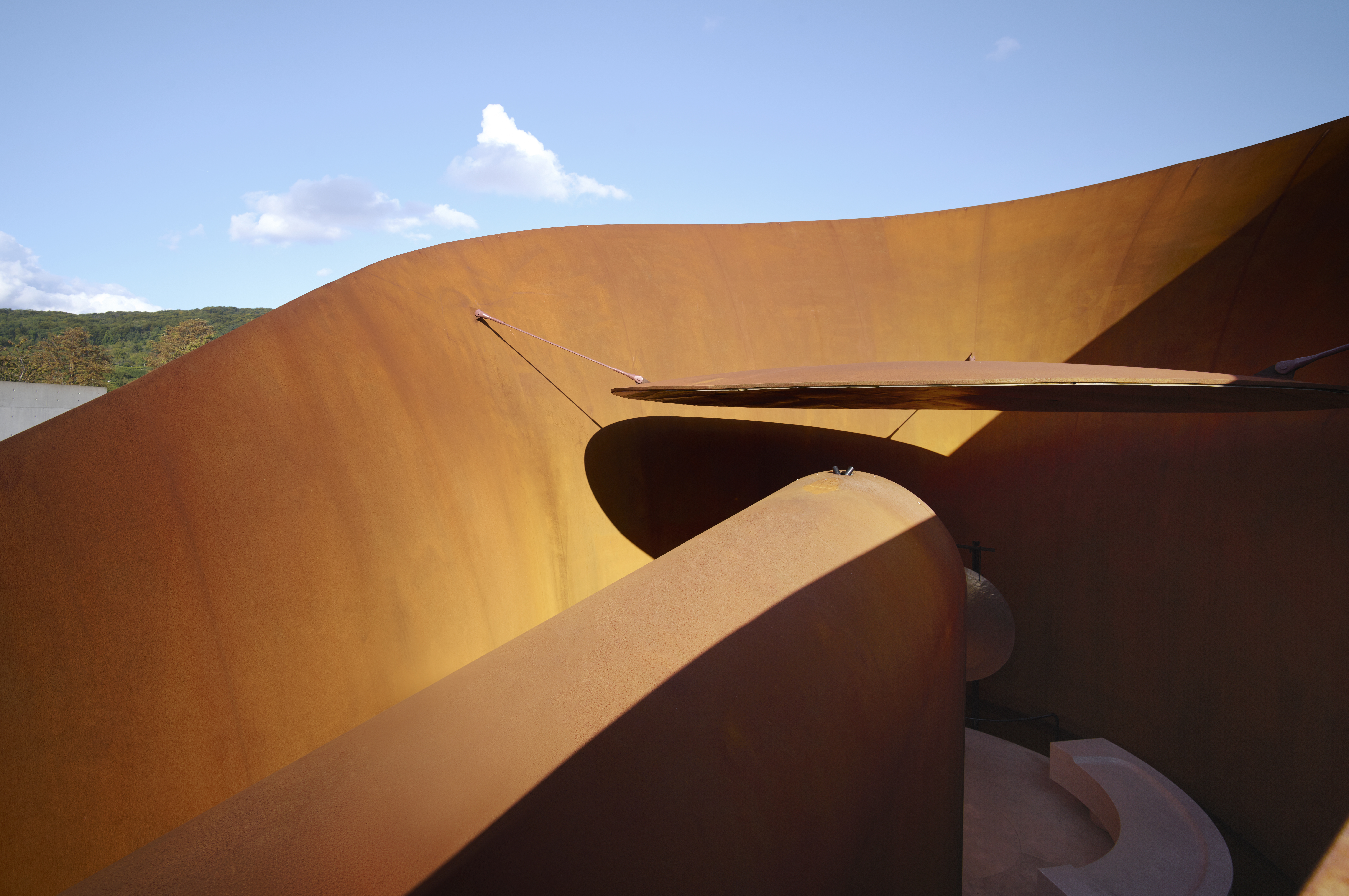 Over the past three decades, the Vitra Campus has evolved from an industrial production site into a cultural landscape where architecture becomes a form of dialogue. “Although it remains an industrial site,” notes Vitra chairman emeritus Rolf Fehlbaum, “the campus has become a public park that now attracts 400,000 visitors annually. People come to see its architecture, explore the collections and exhibitions of the Vitra Design Museum, and enjoy the gardens, restaurants and shops.”The idea for the retreat emerged when Fehlbaum shared a photograph from his visit to the Modhera Sun Temple in India. He recalls, “I showed Balkrishna Doshi the photo of a small shrine I had seen there and asked him whether he would be willing to design a place of contemplation for the campus.”