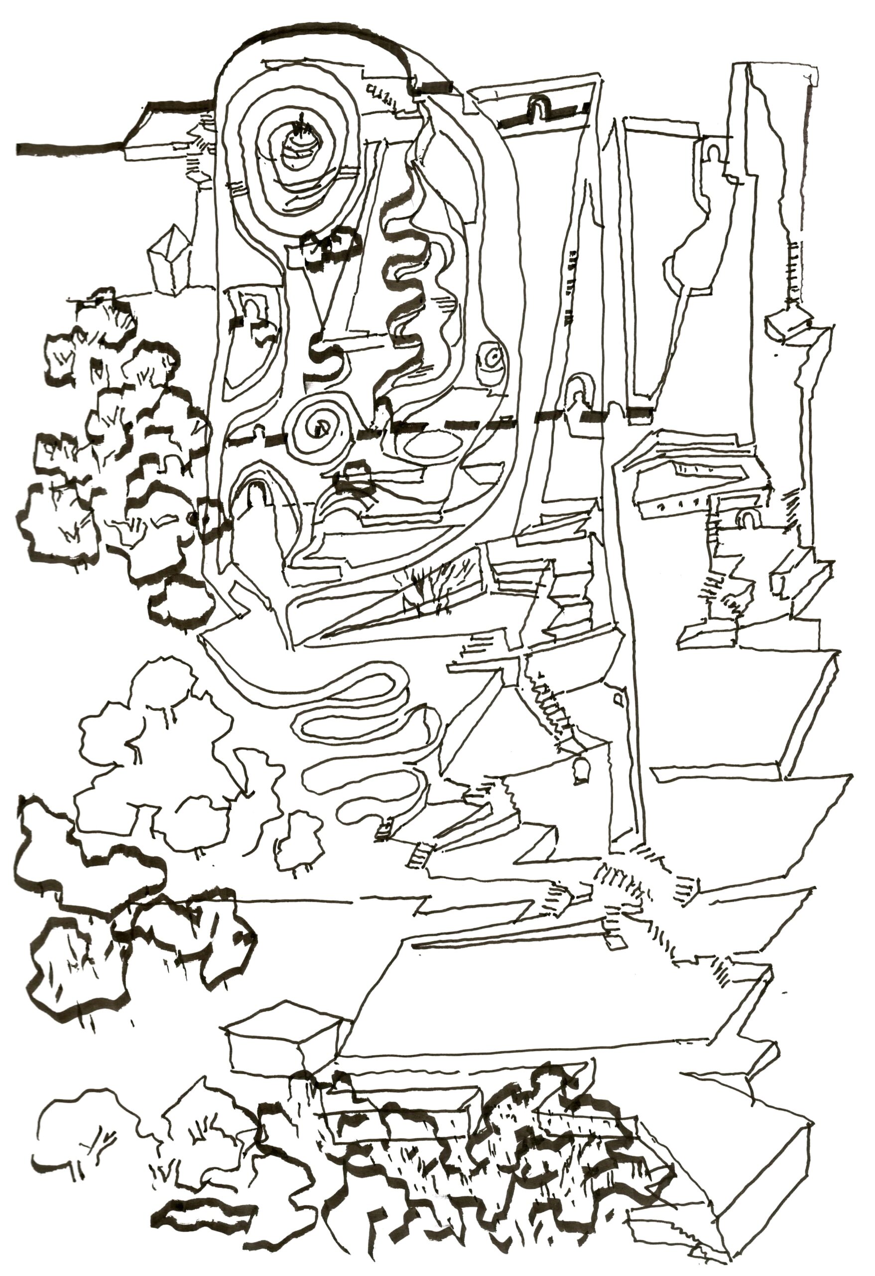 This was the drawing that Doshi then handed over to Khushnu and Sönke to decode and design the retreat. In essence, the idea of the journey was most important. The distance that one needed to traverse. The walk was not linear but rather a landscape to get lost in.