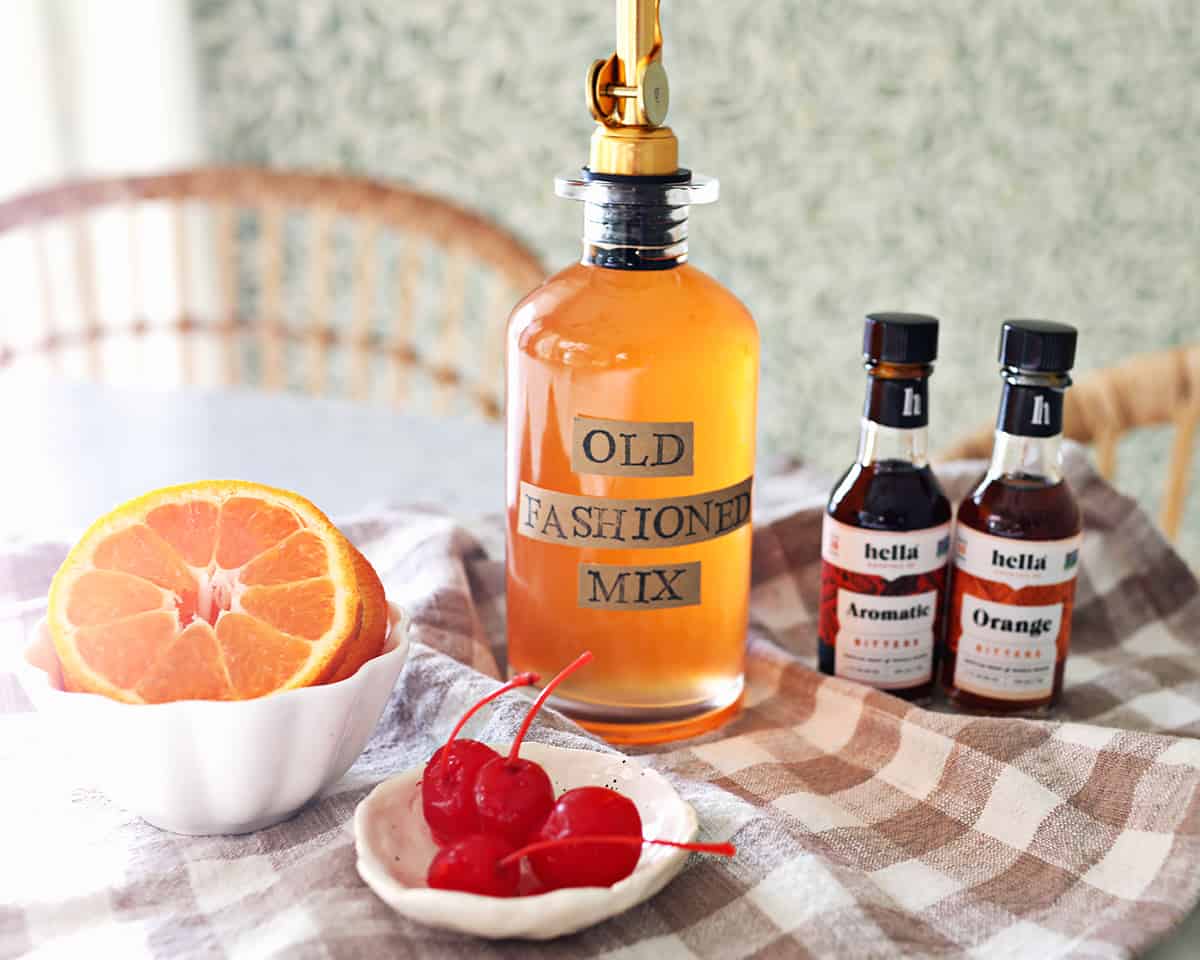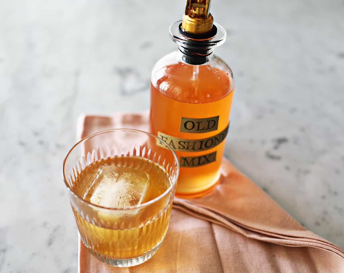 - To mix an Old Fashioned using this recipe, combine 2 ounces high quality bourbon and 1 ounce of mix. Stir and pour over a large ice cube to serve in a whiskey glass.