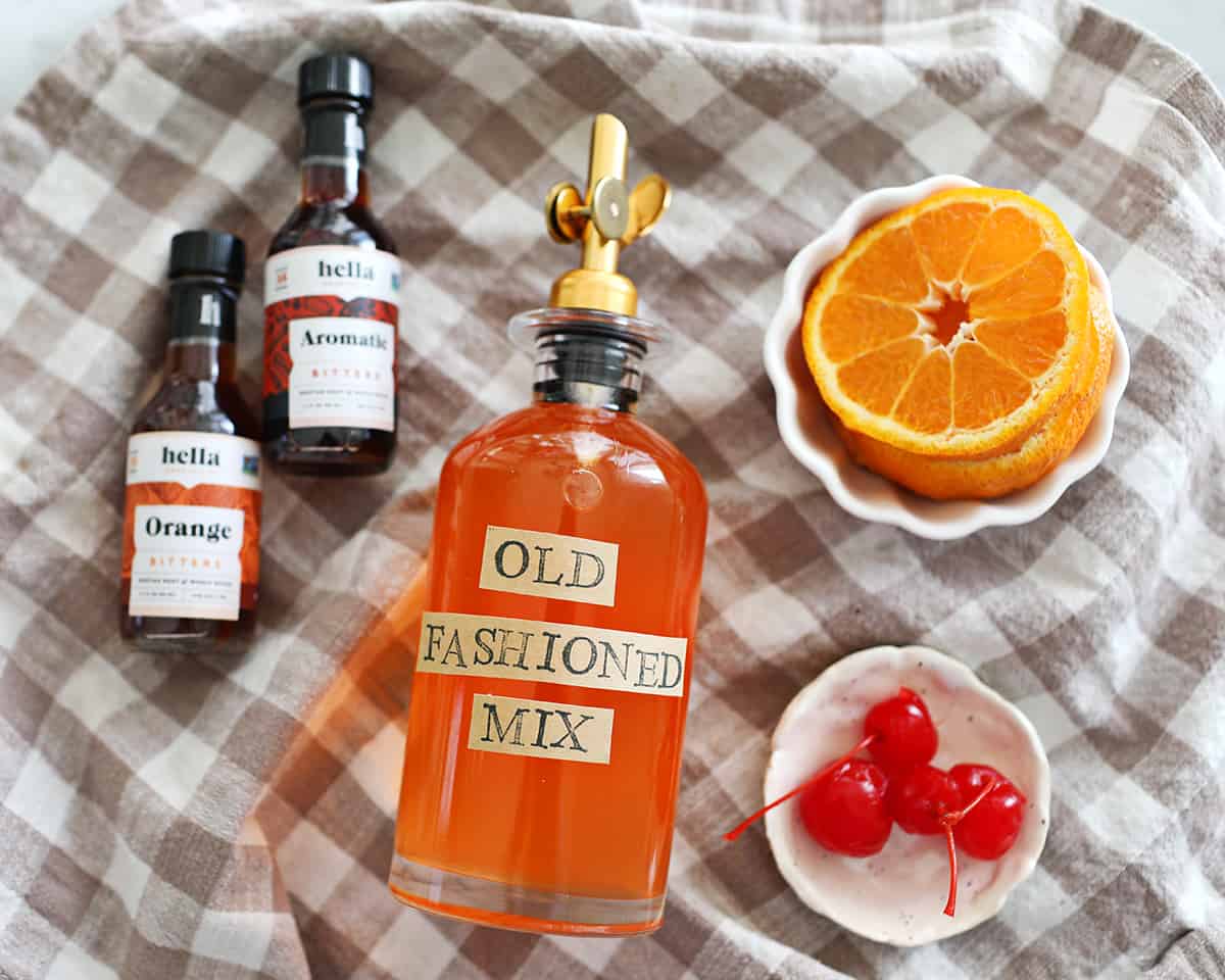 Homemade mix recipe for making an Old Fashioned cocktail.