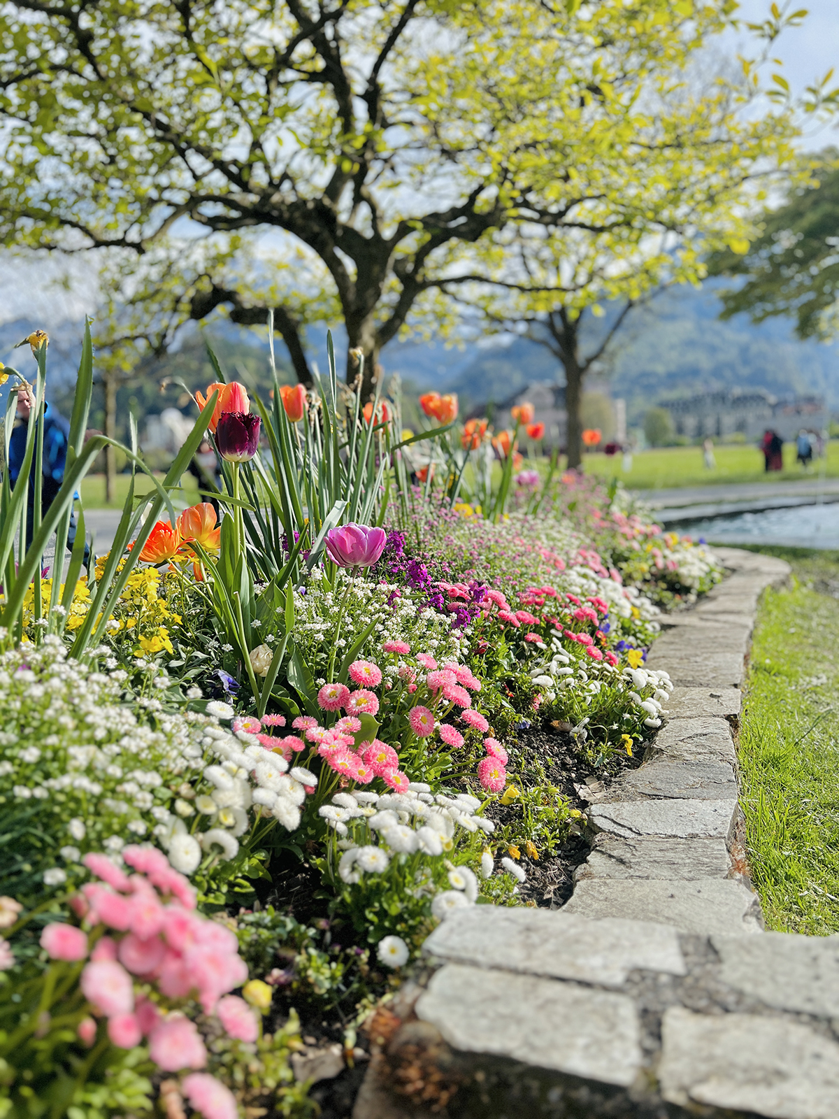 I couldn’t let spring pass this year without sharing a few inspirational photos and our route though the country in the last week of April. Warning: gratuitous flower photos ahead! Our trip took us via train from Zurich, through Bern, down to Interlakken, then down to Lugano on the border of Italy (with a 48 hour visit to the Lake Region to stay in Bellagio on Lake Como) then back to Lucern by train and ferry and returning to Zurich by train for our departure. We didn’t have time on this trip to wander over to the French side to see the region around Lake Geneva, but I’d been there before many years ago.