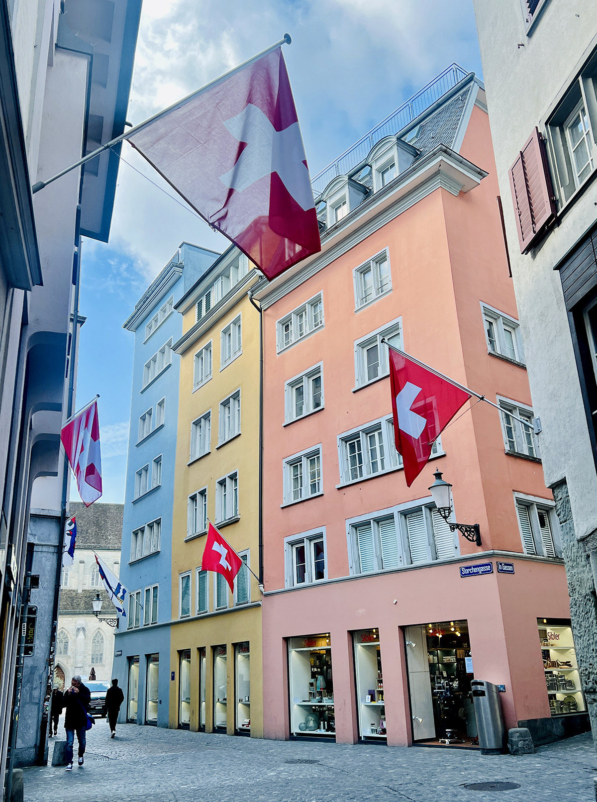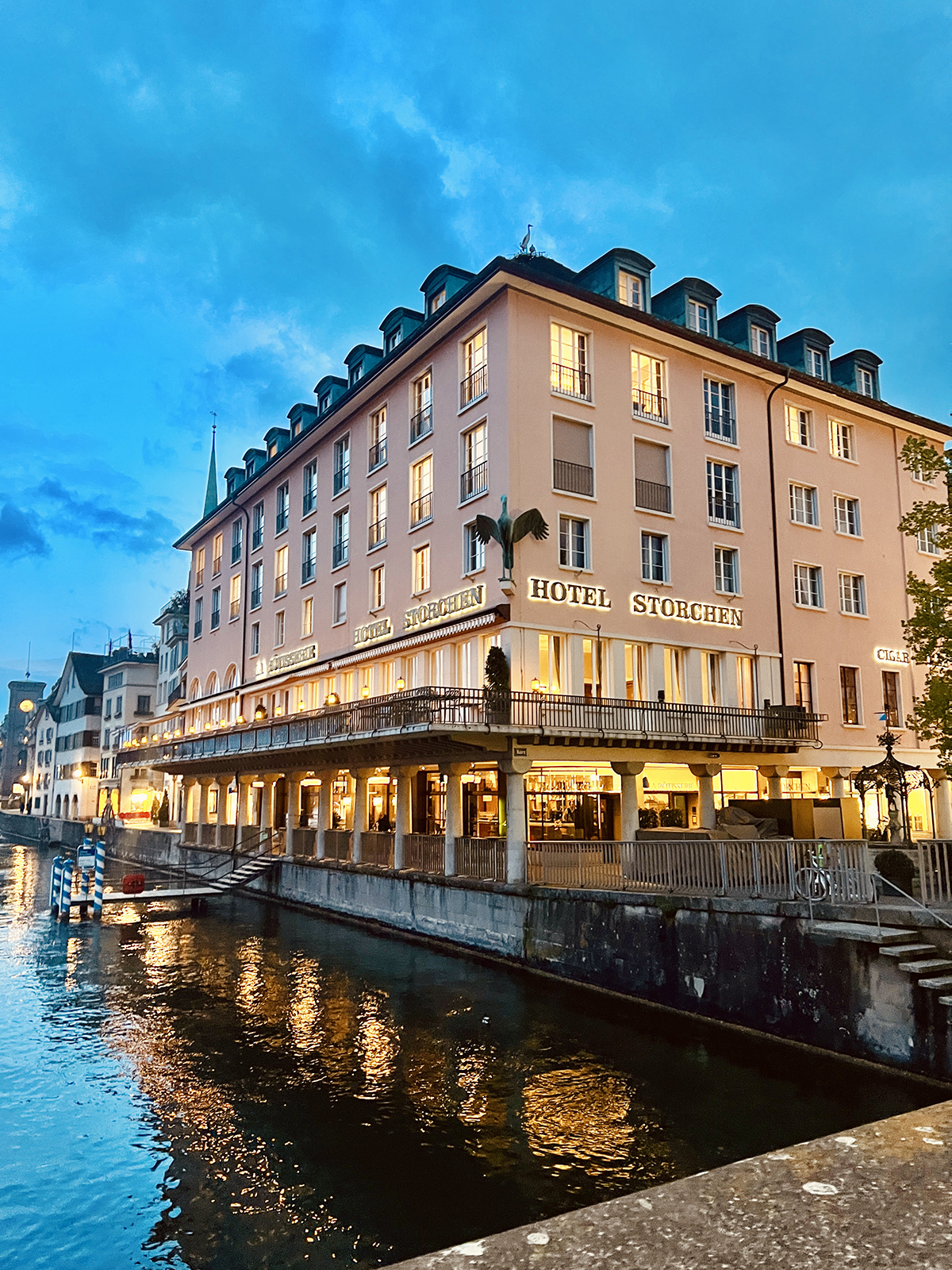 In the evening, my friends and I would stroll up and down the banks of the Limmat River, the light was perfection. Zurich is lovely by day, but in my experience, even lovelier during the evening during a twilight walk when the color of the sky and the lights reflecting off the Limmat River make you feel like you’re walking in a painting.
