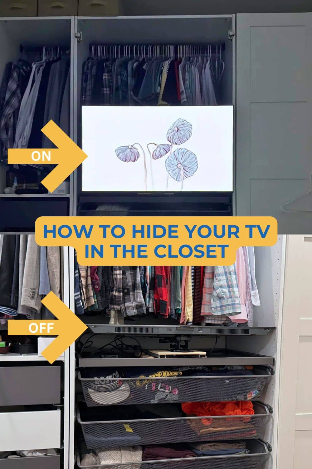 They originally had a 55” screen mounted on the wall, but they needed to get a larger wardrobe. This hack gave them a way to have both and hide the TV, too!