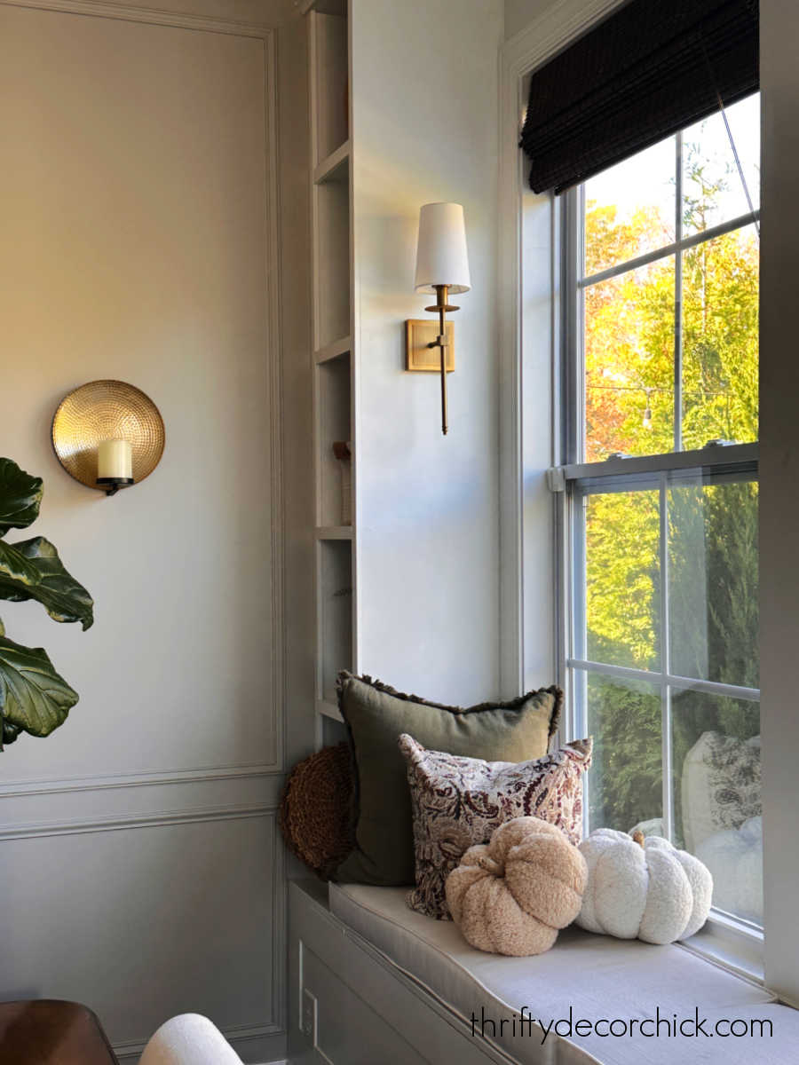 I go back and forth on painting out the whole window seat and bookcase wall. Should I color drench the room and paint them to match the walls? I do love the classic, crisp white: